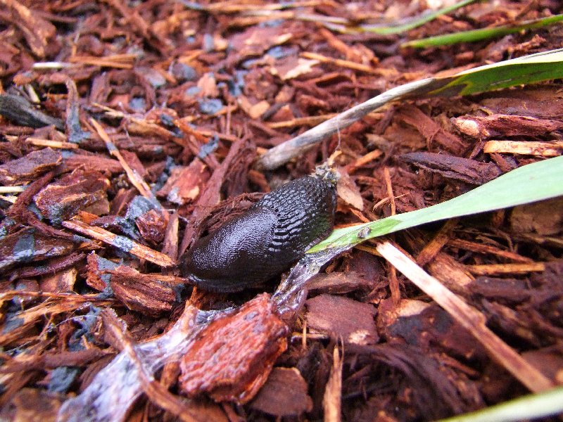 So the goatmother took to making morning and evening slug patrol runs. When she came upon an unsuspecting slug, she would snatch him up and fling him as far as she could. Usually it was into the brush in the faint hope it would get disoriented and become lost in the woods. She figured, at the very least, it would take a loooooooong time to make it back to civilization. And if you think the Mighty Quinn worked that hard back then, well, you ought to see him now. 'Cuz let's face it, it is rather hard to tell the difference.